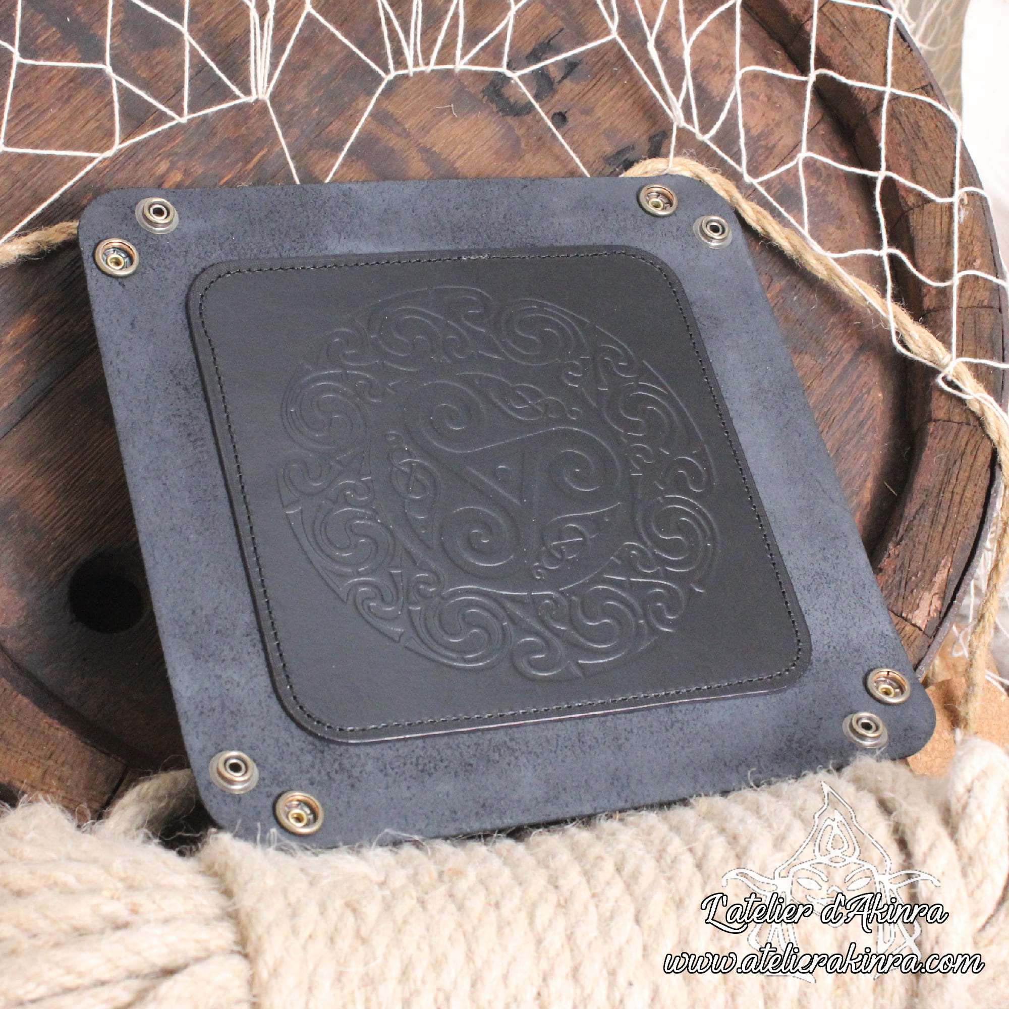 Découvrez notre piste à dés en cuir artisanale, conçue pour sublimer vos parties de jeu de rôle et de jeux de société. La piste à dés permet de lancer vos dés en toute sécurité, en évitant qu’ils ne roulent hors de la table ou n’abîment votre surface de jeu. Le cuir amortit le bruit des lancers tout en offrant un excellent rebond, pour une expérience à la fois confortable et immersive. Dépliable avec ses boutons pressions, elle se transporte facilement et devient un accessoire indispensable pour les joueurs nomades. Idéale pour les maîtres de jeu comme pour les joueurs, cette piste à dés en cuir est aussi une excellente idée de cadeau, alliant utilité, esthétique et savoir-faire artisanal.